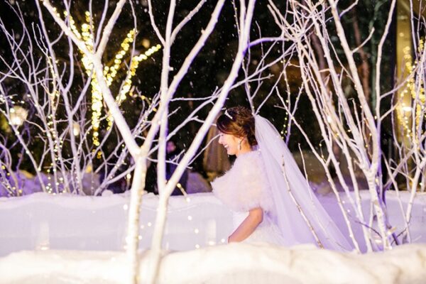 ご家族や親しい友人とアットホームな時間や、雪の少ない地域からのゲストに冬を満喫してもらえるなど、季節の魅力を味方に、心も体も温まるウエディングを。