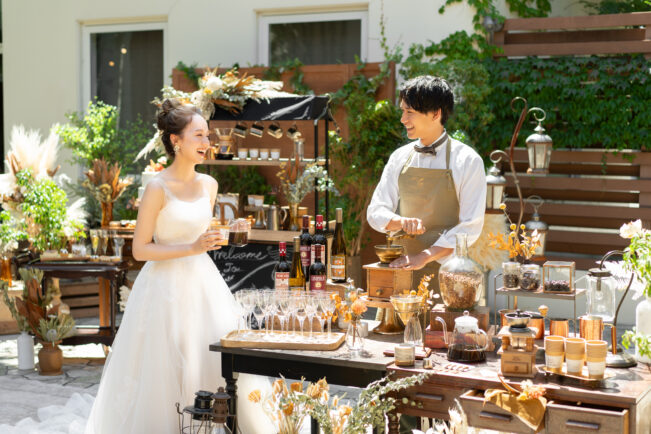 パーティー会場併設のお庭を開放して過ごすアットホームで楽しい時間!ガーデンバーベキューやデザートブッフェ、多彩なフードオプションでゲストへのサプライズ感も増す演出を