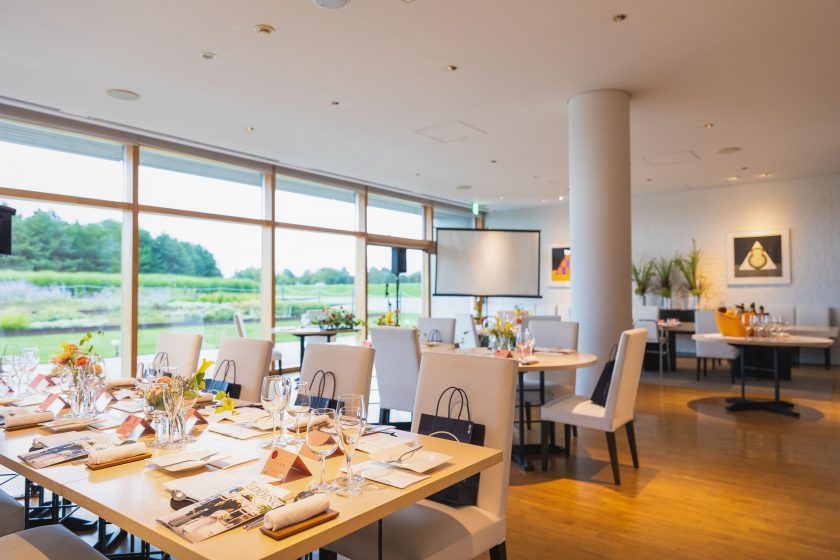 札幌郊外にあるイサムノグチデザインの公園内にあるフレンチレストラン。道産素材にこだわったシェフの出来立てのお料理が、オープンキッチンから運ばれます。