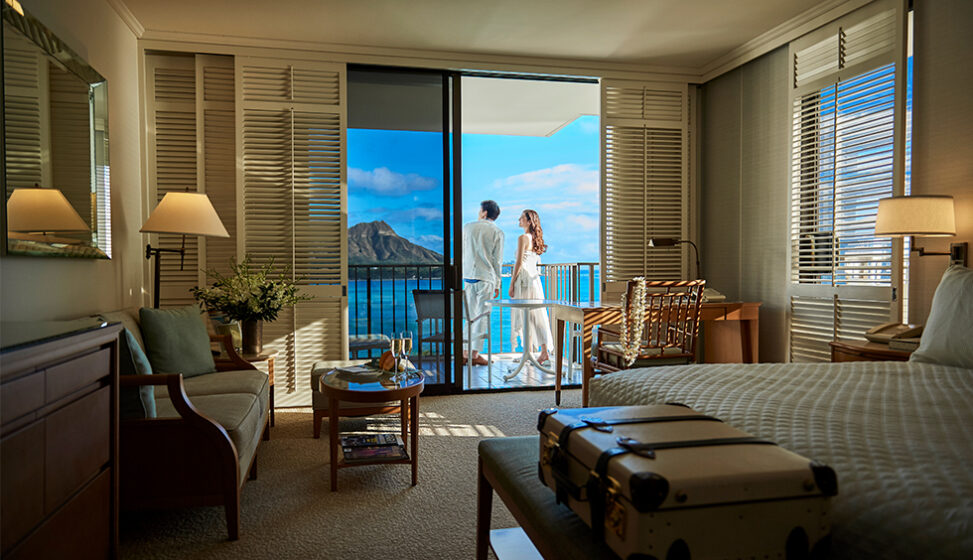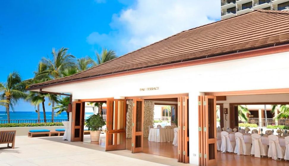 セレモニーの余韻を残しながらダイヤモンドヘッドやワイキキビーチを一望するオーシャンサイドのホテルレセプションで珠玉の料理をお楽しみください。