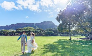 ふたりを乗せたリムジンが向かう先は、美しい白砂のビーチと、ダイヤモンドヘッドの麓に広がるカピオラニ公園。とことんハワイの絶景を楽しんでもらうため、大自然に囲まれるふたつの雄大なロケーションで叶う、贅沢フォトツアーをご用意。