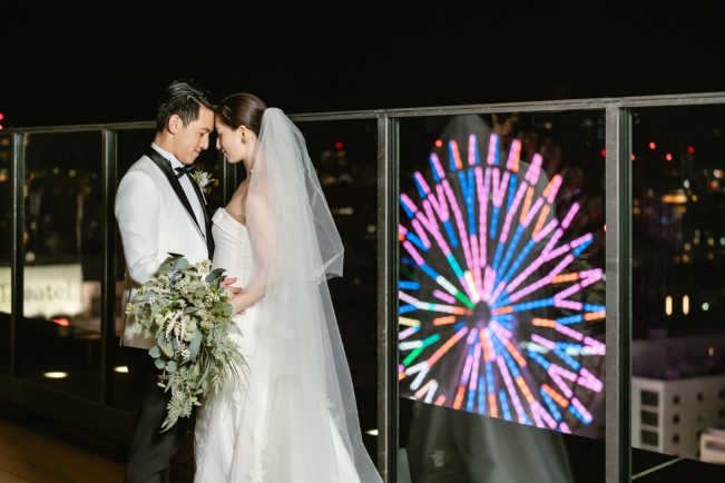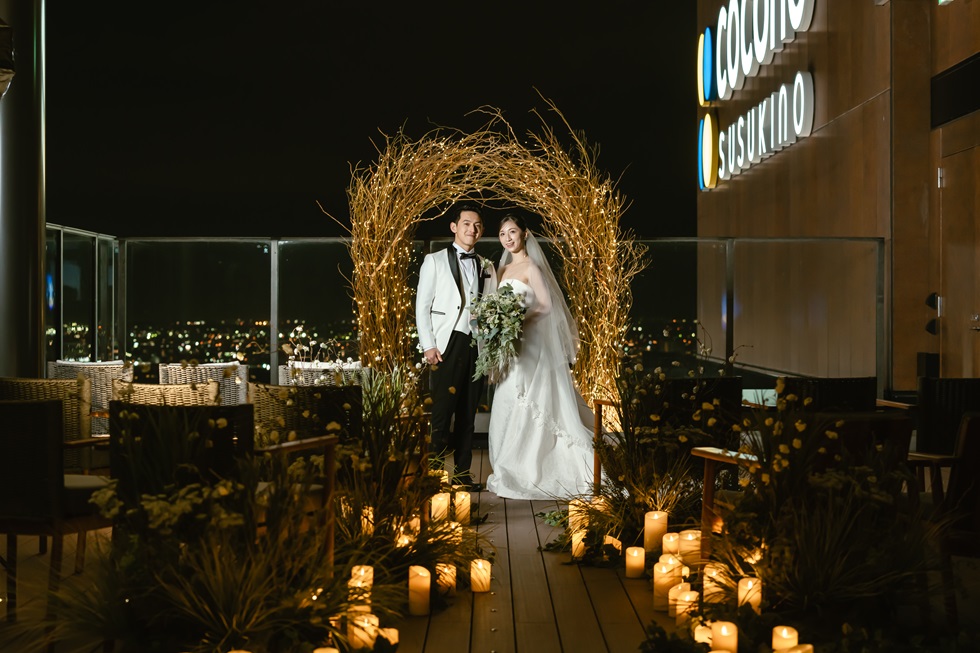 挙式会場のルーフトップテラスからはもちろん、パーティー会場のレストランからもすすきの交差点に面した大きな窓から煌めく夜景を一望できる新しい空間です