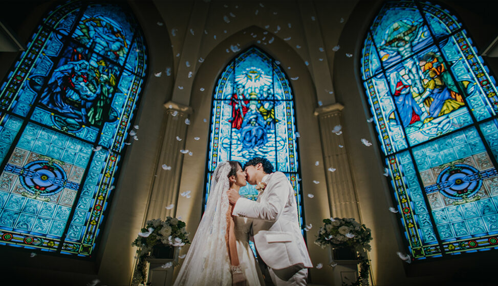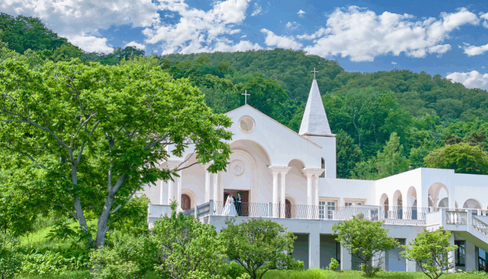 札幌の街並みが一望でき、四季折々の表情を見せてくれる教会は、何十年後もここで結ばれたふたりと共に一緒に時を刻む本物の教会です。年を重ねるごとに美しさを増し、いつまでもそこに在り続けられる本物にこだわって建てられました。400年に渡り美しい音色を奏でるパイプオルガンや現代美術では表現できないと言われたステンドグラスの深い色。新しい人生を歩むふたりと共に時を重ねてゆく教会はまさに永遠を誓うのにふさわしい場所です。